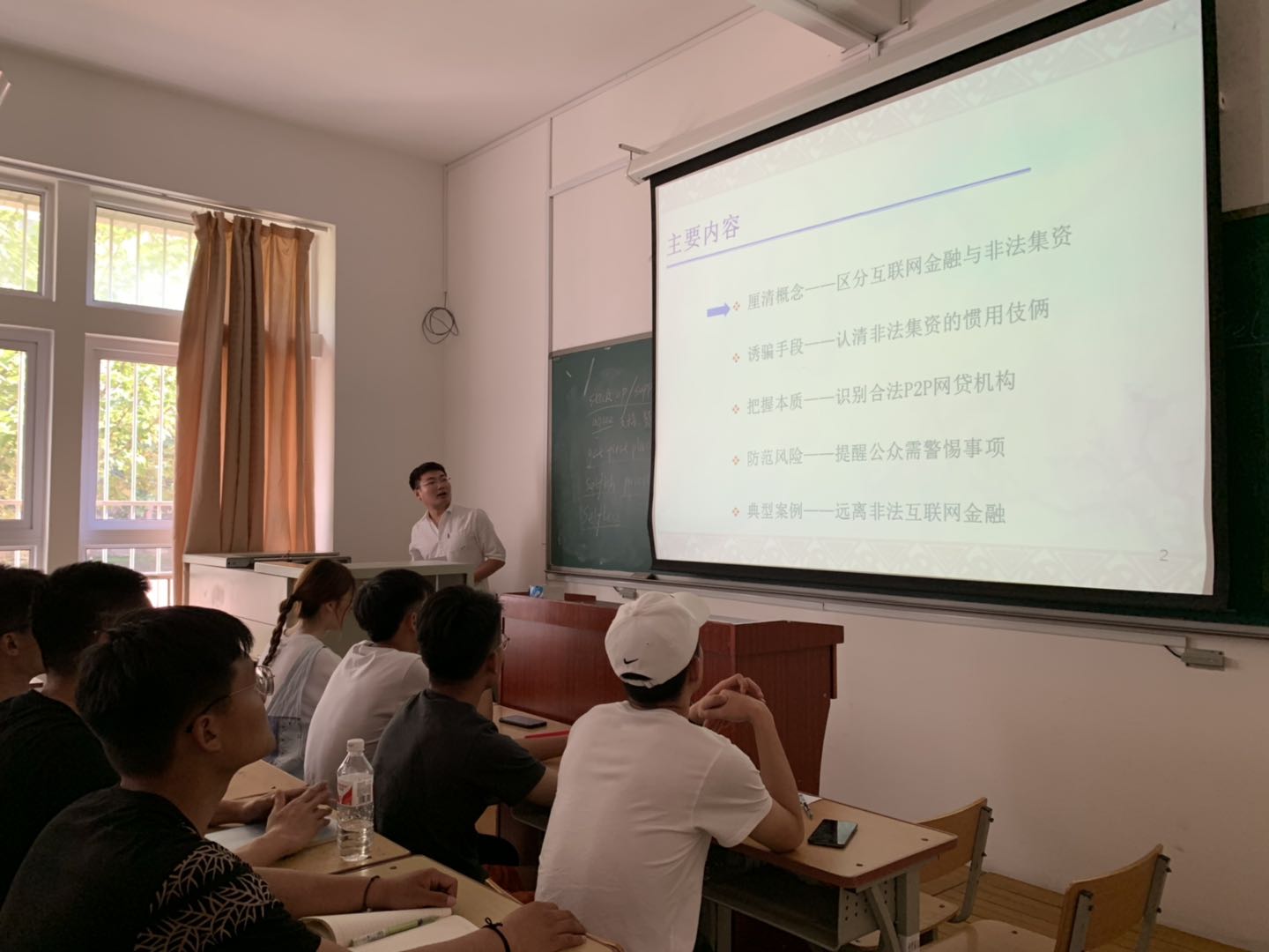 本次活动以讲座的方式进行,安全保卫处邀请学校资产管理处崔智军老师以提高风险防范意识,远离非法集资为主题进行讲解,学生们认真聆听,进一步加强学生们的风险防范意识,不上当受骗。