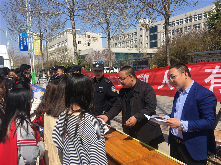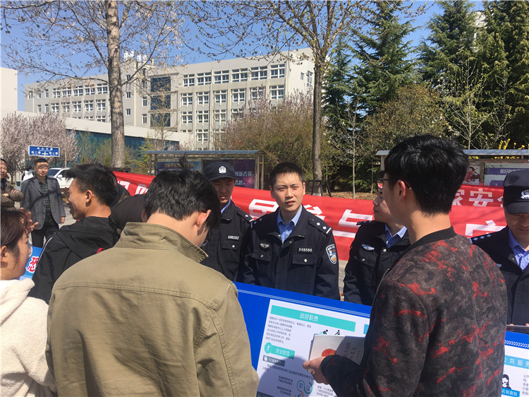 4月15日上午,在校园内人流密集的办公楼和教学楼等地向过往师生发放宣传手册。中心大道两边还摆放及悬挂了精心制作的展板和横幅,并组织专门人员进行详细讲解,设立现场咨询台解答学生疑问。