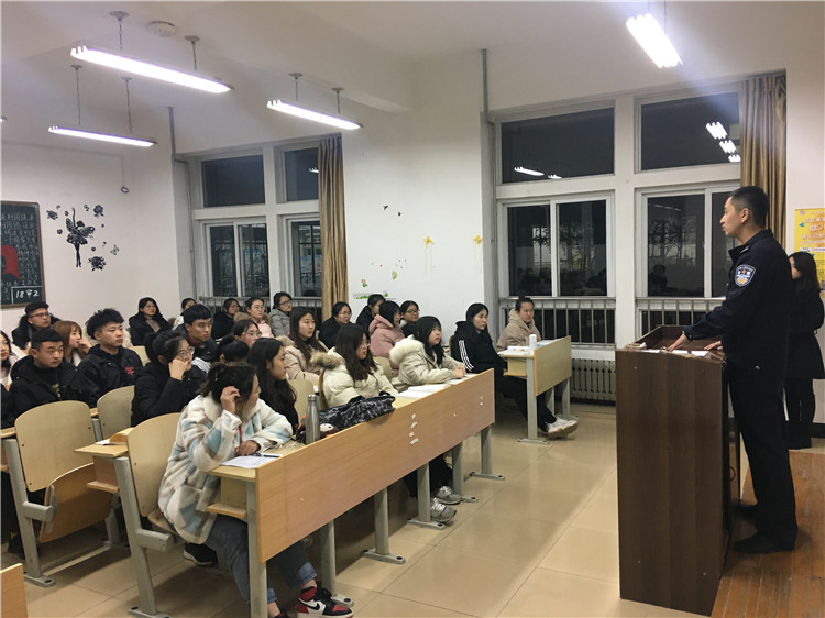 此次安全教育活动,内容贴切实际,民警讲解生动活泼,紧紧围绕近年来高校学生遭遇到的实际案例进行分析讲解及宣传防范,深刻地提高学生们对自身安全的防范意识。(通讯员、撰稿:车正 审核:时登华 孙芹宝)