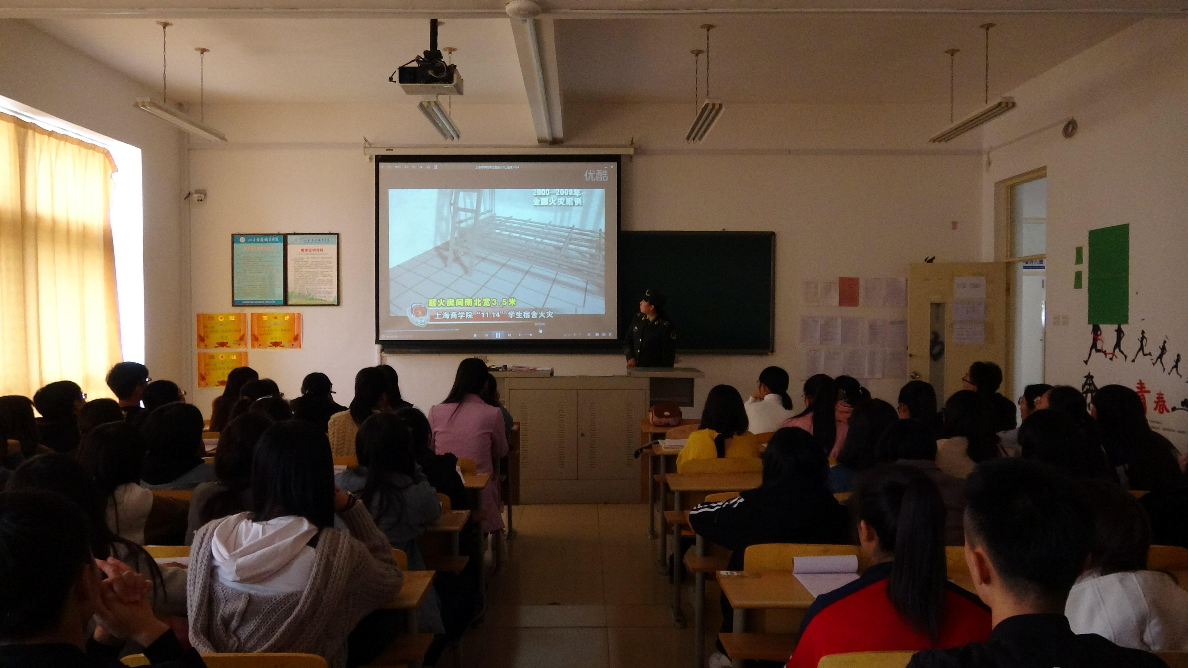 11月7日下午,消防大队宣传人员在会计系开展了“消防安全进课堂”活动,消防宣传员首先进行了消防安全知识有奖问答,并结合最近几年校园发生的火灾案例,向师生讲述了学校消防安全的重要性和必要性,以及日常生活中防火、灭火知识和逃生自救技巧。随后,又组织学生们观看了消防安全宣传片。