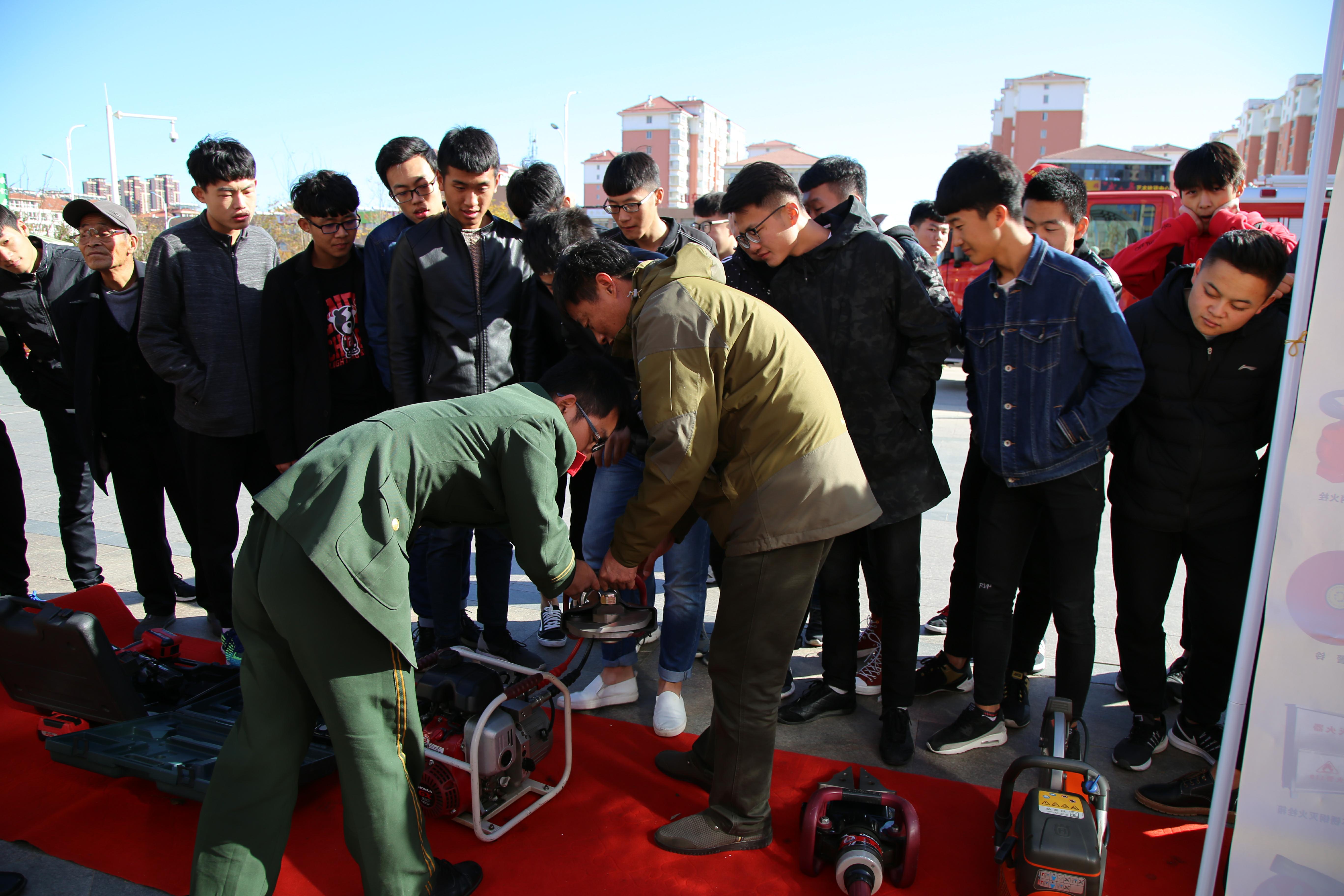 11月8日上午,安全保卫处组织经济管理系40余名学生参加了消防大队组织的“关注消防,平安你我”宣传教育活动。活动中,消防志愿者发放了宣传材料,宣传员向同学们讲解了金属切割机等部分消防器材的使用方法,随后,进行了消防知识有奖问答及作战服穿戴比赛等趣味活动,我校学生踊跃参加。