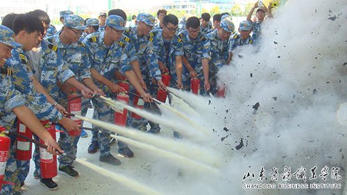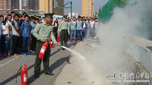 在消防灭火演练中,学校特邀请高新区消防大队对新生进行消防知识培训,通过现场讲解、实际演练等方式进一步普及了消防基础知识、灭火器使用方法、火灾发生时注意事项和安全逃生方法,增强了新生的消防意识。确保每名新生正确掌握灭火器的使用方法。