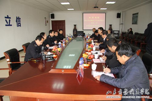 11月21日,烟台市公安局高新区分局局长李建丰一行来校走访。学院耿建敏院长参加了警校联席会议。双方就加强合作、共建平安校园开展了深入研究探讨。
